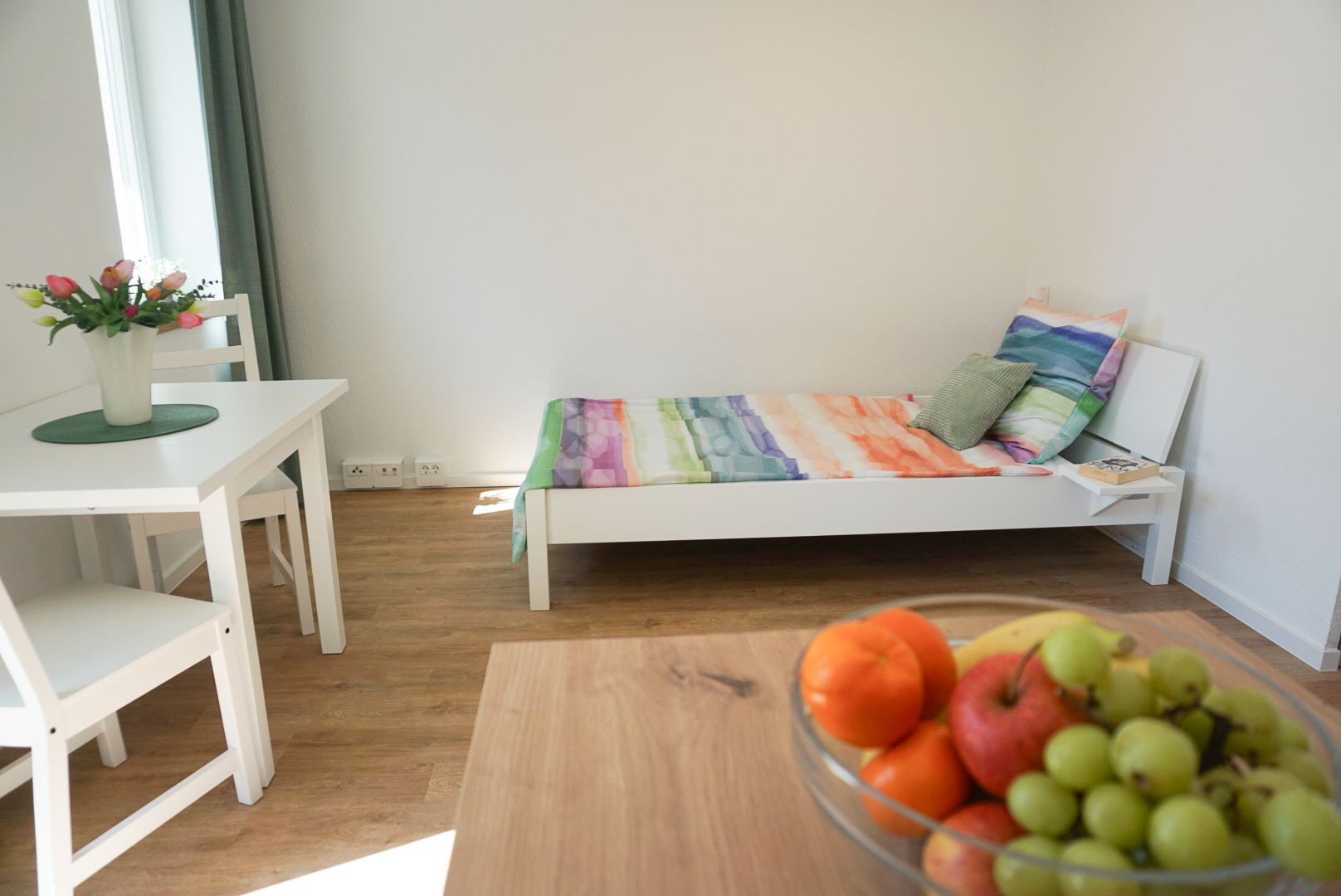Jede Wohnung ist modern und geschmackvoll teilmöbliert eingerichtet, sodass du dich sofort wie zu Hause fühlen kannst. Vom gemütlichen Bett über den voll ausgestatteten Essbereich bis hin zur funktionalen Küche – wir haben an alles gedacht.
